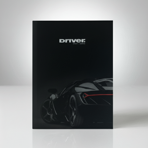 Clipboard z motywem sportowego auta i logiem Driver. Wykonany z lekkiego, wytrzymałego tworzywa, z metalowym klipsem, który stabilnie trzyma dokumenty.